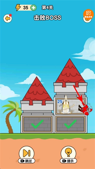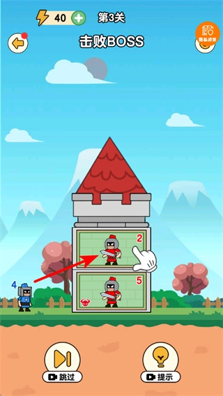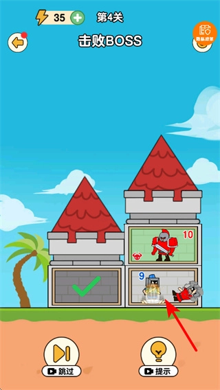 击败普通敌人能积攒战力,等战力达标后再去挑战BOSS,要对准BOSS所在的格子发动强力攻击,保证将其击败。