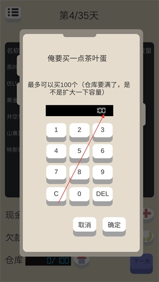 购买时请留意仓库容量,点击上方的键盘即可输入想要购买的数量。
