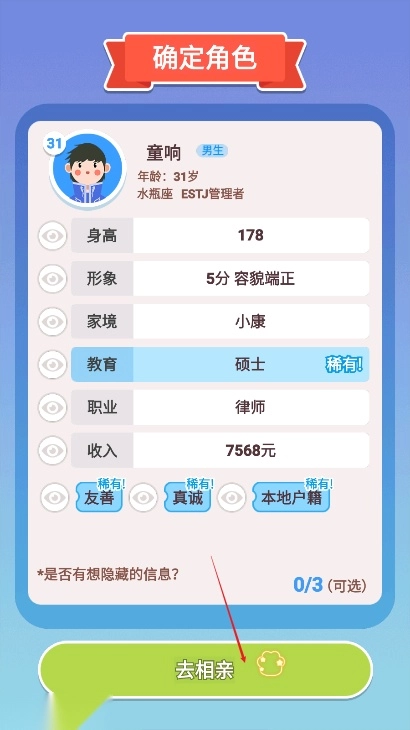 游戏的主角是“百态城”里一个平凡的年轻人,自出生起,便要面对家庭与社会施加的种种期许。随着年岁渐长,相亲成了他生命里无法回避的议题——父母的频频催促、朋友的玩笑调侃、现实的重重压力,迫使他踏入这场充满未知的“爱情试炼场”。