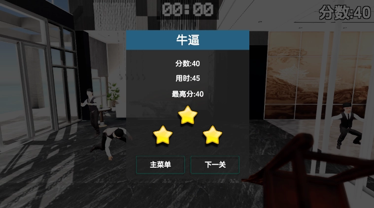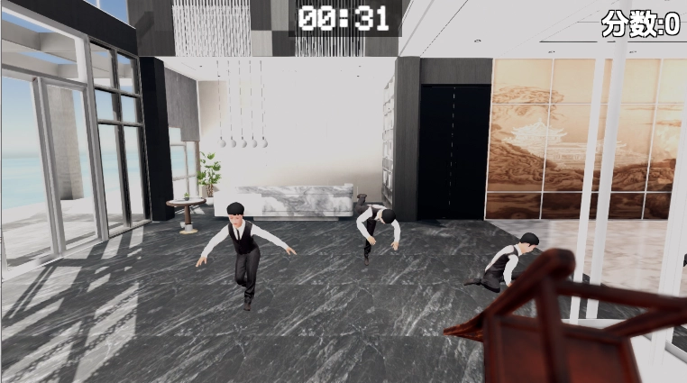 在《管家模拟器》里,你需要在45秒的限定时间内,借助椅子来击倒尽可能多的目标,以此获取更高分数。这款游戏当前设有4个关卡,每个关卡都包含着不同的挑战内容。
