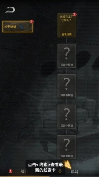 按照系统给出的指引一步步查看那些带有疑问的标记和线索提示,再经过逻辑层面的推理分析,最后确定米娅依旧被困在仓库里的某个地方。