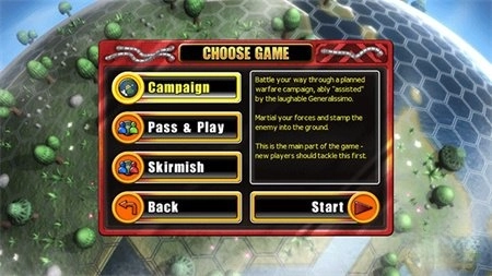 在Campaign模式中,玩家能接触到Basic、Medium、Hard和Ridiculous这四个难度等级。当玩家通关某一难度的全部20个关卡后,更高一级难度的关卡就会开启。随着难度上升,敌军方面会有两个明显的改变:其一,油井产出的金币数额会增多,比如Basic难度时每个油井每回合产出50金币,这个数值会随难度提高而翻倍(具体的倍数还没经过验证,有可能是2、3、4倍,也可能是2、4、8倍之类的);其二,敌军的攻击力会变强,拿步兵(Grunt)对狙击手(Sniper)和特种兵(Commando)造成的伤害来说,Basic难度下的伤害比例是75%/20%,Medium难度下是90%/24%,Hard难度下是100%/28%,到了Ridiculous难度则达到100%/36%。这样的变化使得在后两个难度里,狙击手的实用价值大大降低,玩家在部分关卡中没办法再借助狙击手能扛住步兵一次攻击而不死的特点来轻松通过关卡了。