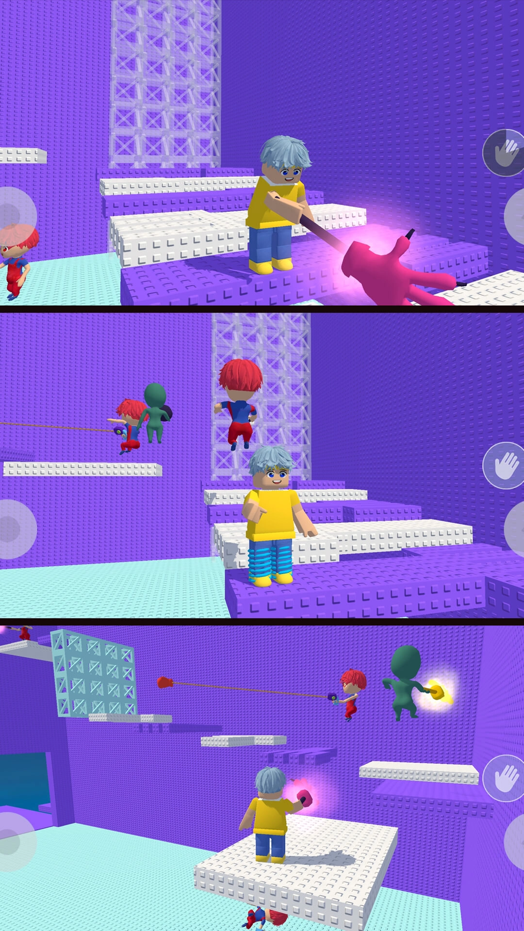 当遇到其他角色时,你们可以展开互动协作——比如一同拉动开关、进行接力跳跃,借助伙伴的力量来闯过高难度路段,还能解锁团队专属的奖励。