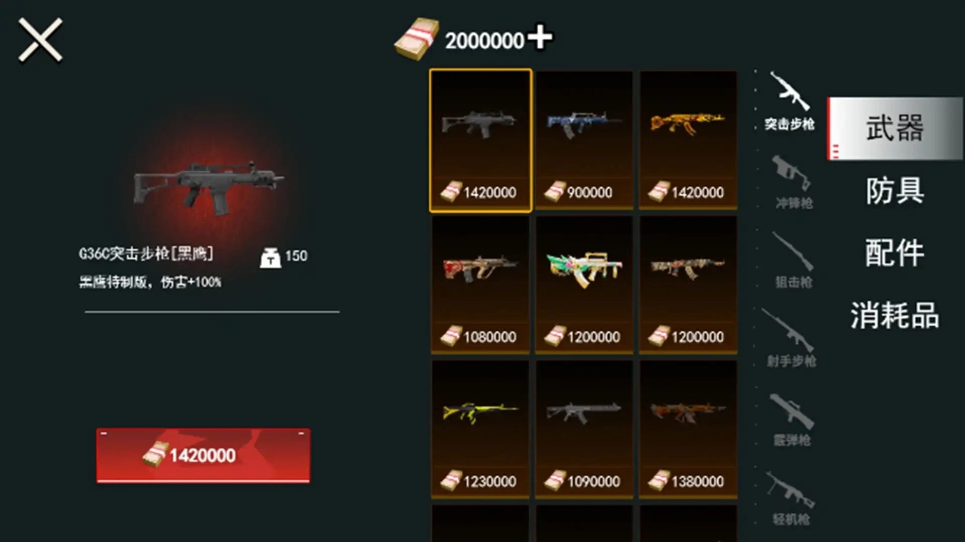 3、这里有手枪、机枪、狙击枪等多种类型的武器可供你使用。