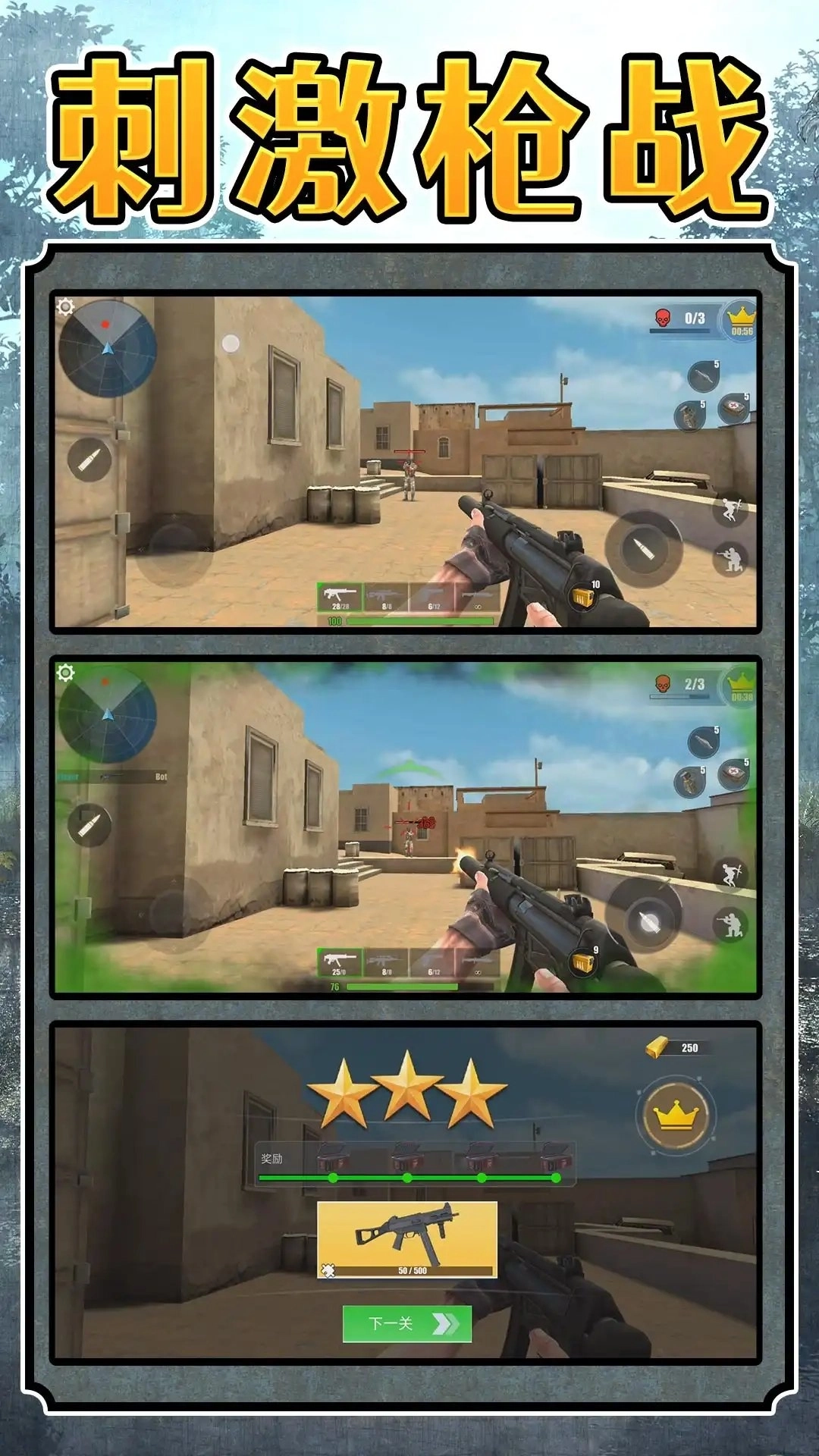1、在游戏里体验最精彩的枪战射击对决,每一场战斗都让人热血沸腾、畅快淋漓;