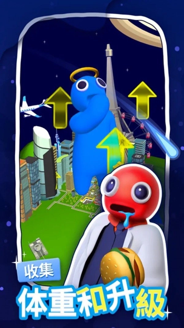 2、玩家得快速点击屏幕,让角色持续吃食物来增加体重。点击速度越快,体重增长的速度也就越快。