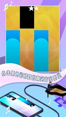 1、操作简便,只需用手指点击这些黑色方块,就能一同演奏出歌曲。