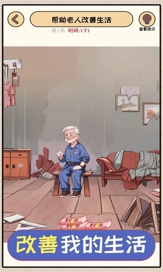 《改善我的生活》是一款十分有趣的冒险解谜游戏。在游戏过程中,玩家能够依据场景里的提示来帮助角色。随着天气日渐寒冷,那些漏风的场景让角色备受煎熬。赶紧寻找合适的办法来帮助角色改善生活,让他快乐起来吧。场景里提供了家具装饰品、火柴和冷水等选择,你可以根据角色的实际需求来做出合适的抉择。