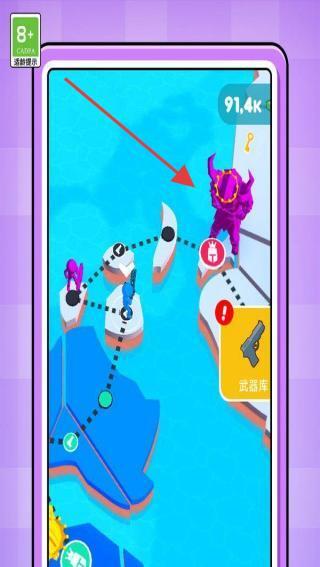 1. 在地图画面中,依照箭头的指示方向,朝着紫色标识图标所标注的紫色怪物所在地进发,同时规划好行进路线,做好战斗准备,进而推动关卡的进展。