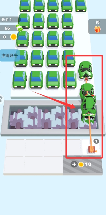 游戏的核心玩法是让玩家精准操控钩索进行发射,把目标车辆拖进粉碎机里。拖拽时的角度和力度会对操作结果产生影响,玩家需要通过练习来熟练掌握相关技巧。