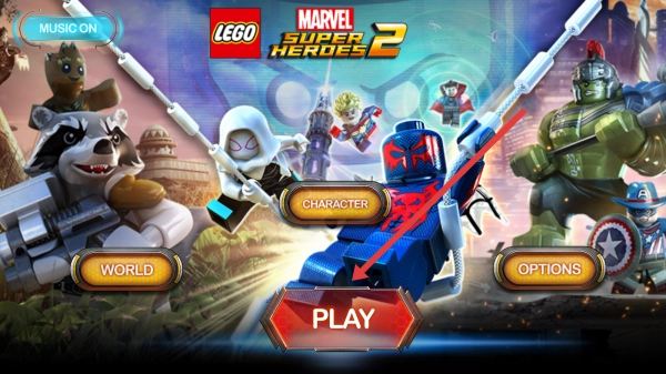 1、在【LEGO-Marvel-Super-Heroes-2】的启动界面,点击【PLAY】按钮进入游戏,即可操控乐高漫威角色开启冒险之旅。