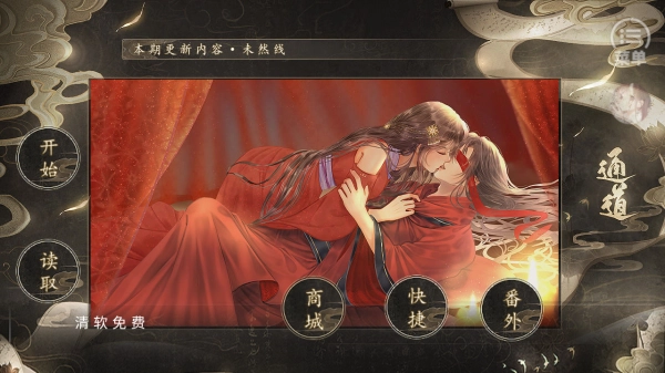 点击【开始】按钮开启全新剧情,选择【读取】可继续游玩已有的进度;通过【快捷】选项能进入特殊线路,【番外】板块可查看额外剧情内容,【商城】内可以购买道具,助力推进游戏进程。