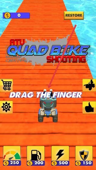 在启动界面,按照“DRAG-THE-FINGER”的提示,滑动手指来操控四轮摩托,即可开启游戏。