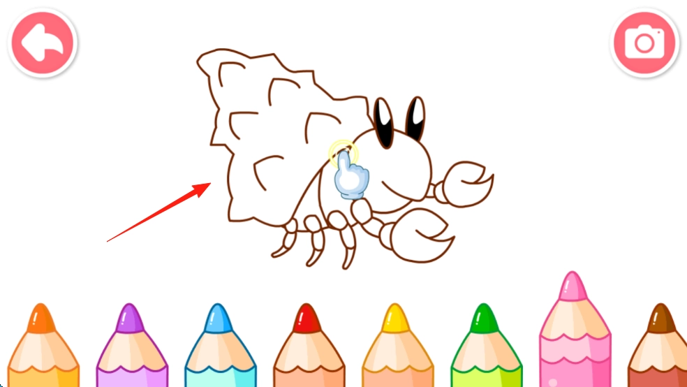 点击图案,切换涂色页面,用手指选择颜色,涂抹线条,完成上色。