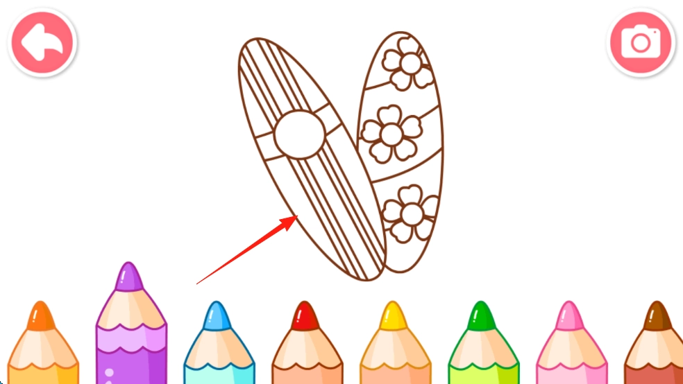 挑选心仪的图案,进入涂色页面,选择合适的彩笔,为图案填充色彩,完成自己的创作。