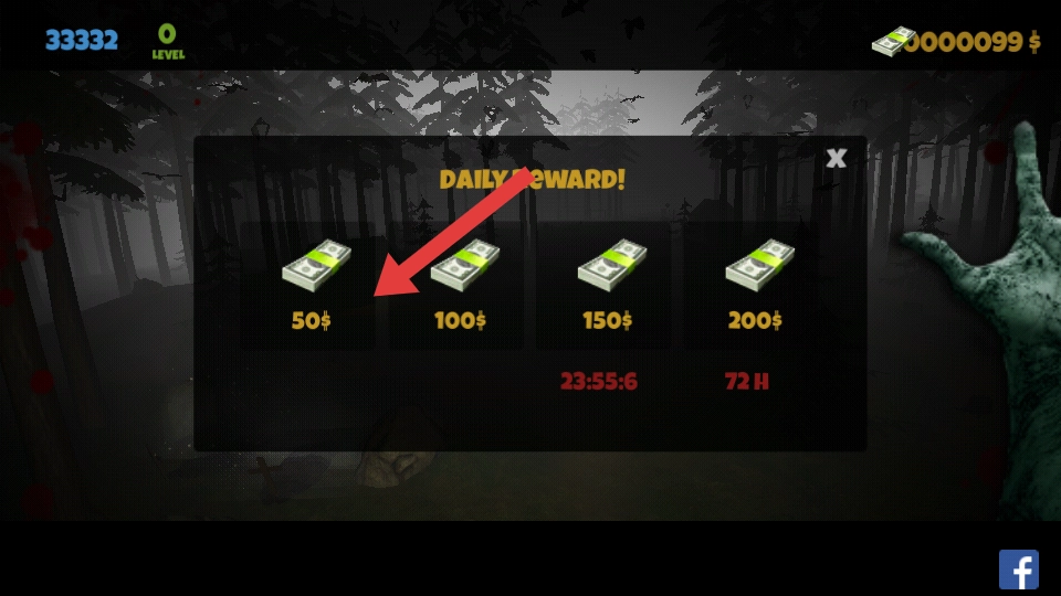 在僵尸射击游戏里,每天领取奖励能拿到50美元,攒下来的钱可以用来购置武器或者升级装备,从而增强自身能力。