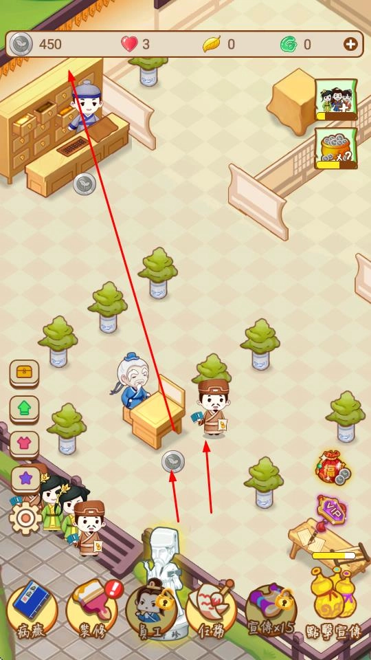 招募员工协同运营:当诊金积累到一定程度,可招募药童等员工,药童负责抓药煎药,坐堂医可协助接诊分担压力,提升医馆整体运转效率,员工的加入让挂机期间的收益更高。