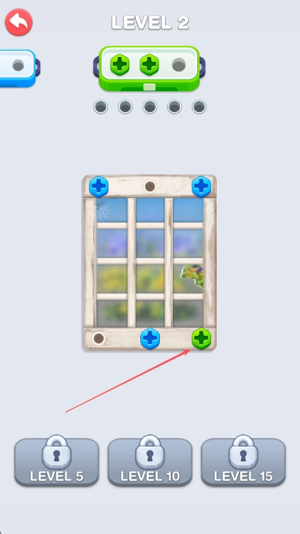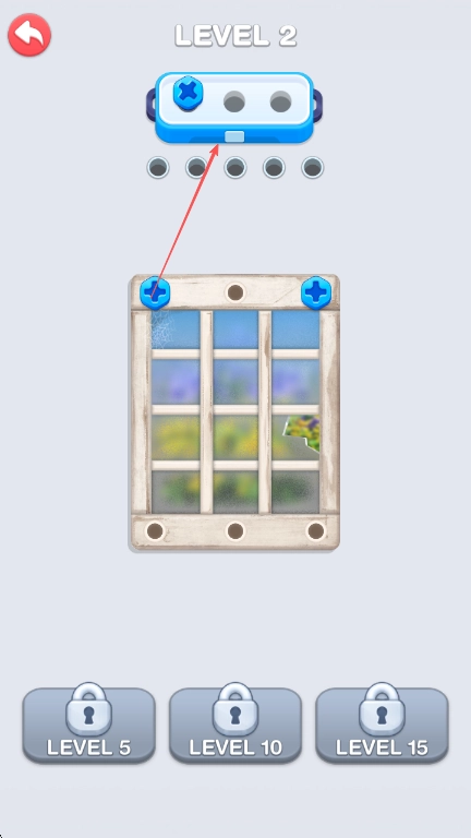 进入关卡后,先查看窗户上需要拧螺丝的孔洞所在位置,再看看上方配备的螺丝组件。