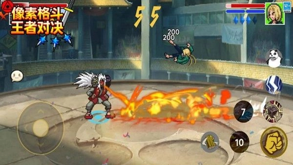 1、运用复古像素风格画面,在视觉可爱度与技能特效呈现上取得平衡,既能够勾起玩家的怀旧情愫,又可以彰显格斗的热血氛围。