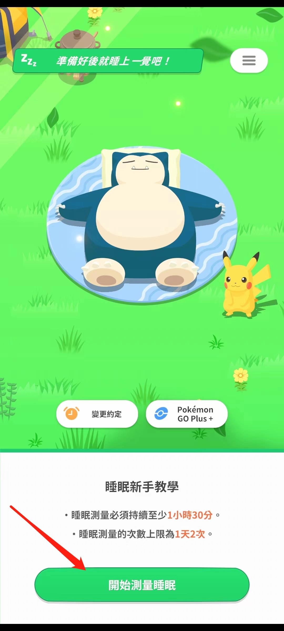 1、先安装宝可梦睡眠国际服,打开应用进入主界面后,点击中间显眼的【点击来开始】按钮,就能开启你的首次睡眠探索之旅。