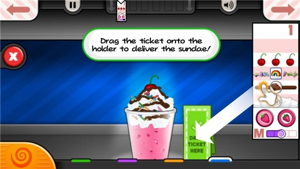9、最后把冰淇淋递给顾客,顾客会依据你制作冰淇淋的情况给你金币。