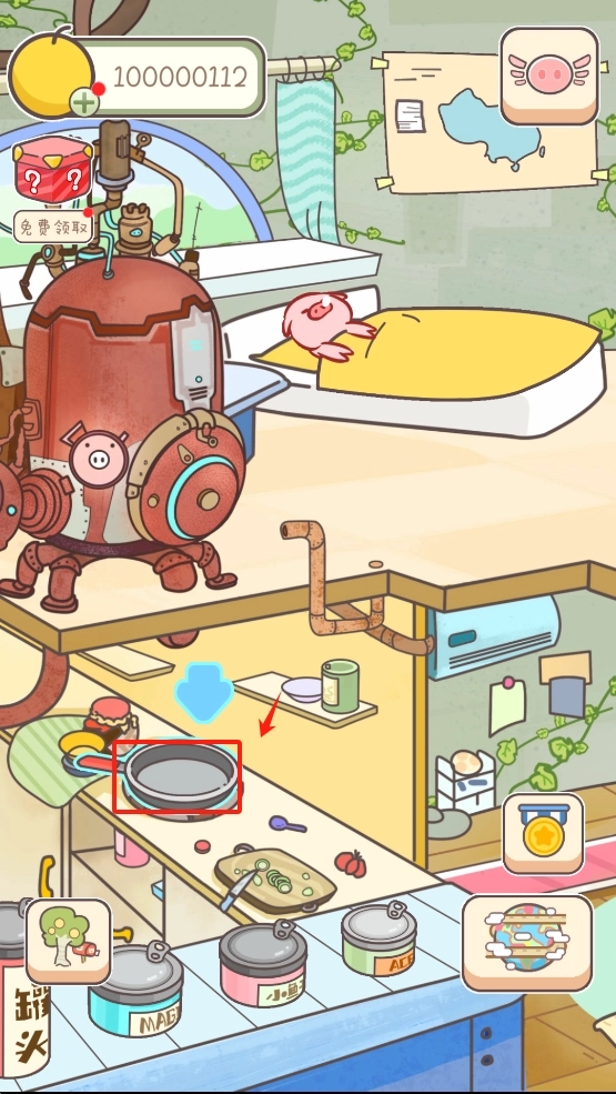 在厨房场景中,点击炉灶上的空锅,开始烹饪操作。
