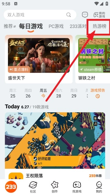 然后点击热游榜,这里就是排行榜。