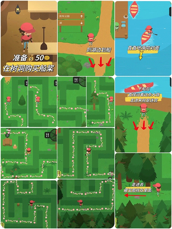 走迷宫:50去湖边划船去对面走迷宫,在迷宫的尽头。