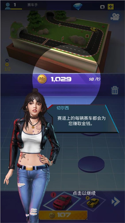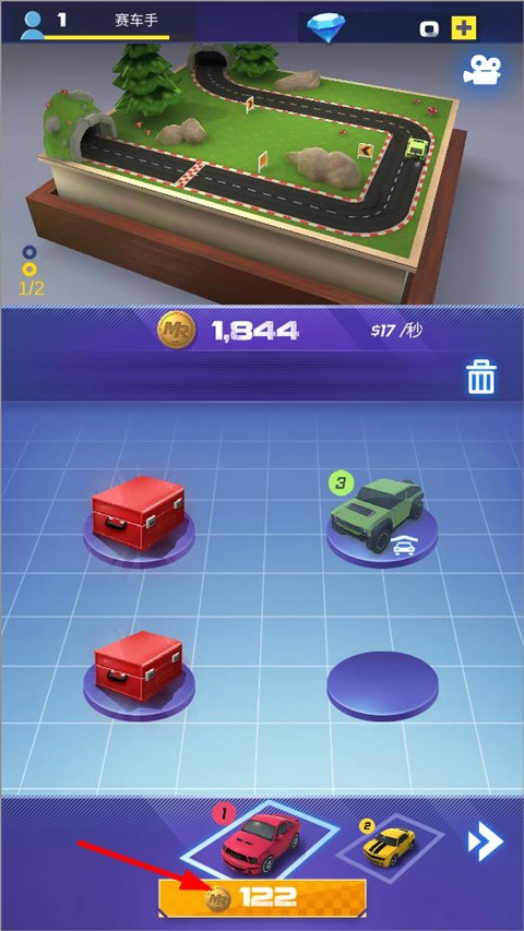 2、将赛车放置在跑道上,赛道上的每一辆车都能为玩家获取金币;