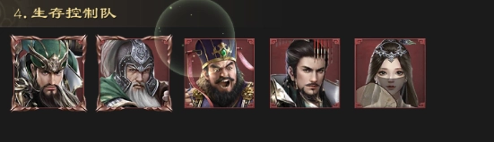 4、关羽+黄忠+董卓+刘备+黄月英、蜀汉核心阵容,兼顾坦度与输出。
