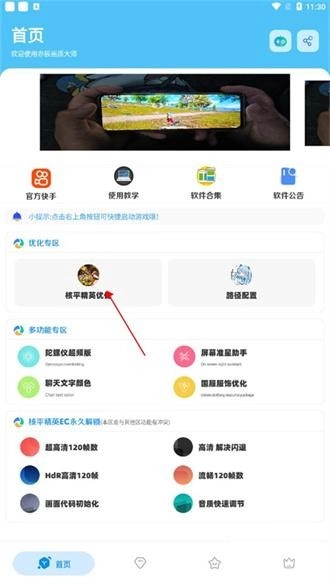 3、在这里我们可以看到多功能专区,然后点击优化。