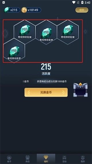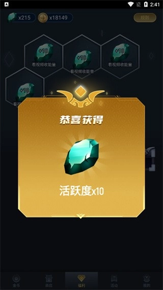观看完广告后机会获得相应的活跃度;