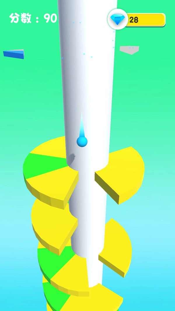 游戏的核心在于让小球从高塔的顶端一路下滑,每一层都有通往下层的空隙等待被突破;