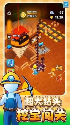 持续收集金币,用来解锁更先进的设备与工具,像高效钻机和自动化运输系统这类,以此全面增强采矿能力。