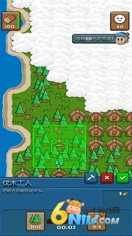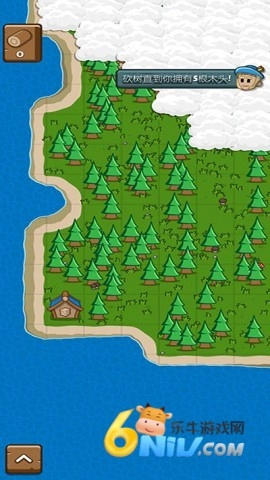 2、如图所示,右上角提示需要五个树桩,点击场景里的树就能获取。