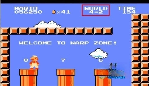 爬到4-2关卡的尽头后,会出现主要的三个入口,分别对应第6、第7和第8关,记得选择第8个入口。
