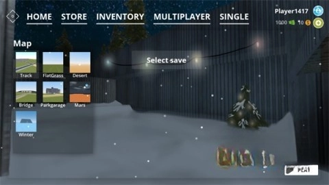 进入游戏后,界面从左到右依次为主页(home)、商店(store)、仓库(inventory)、多人游戏(multiplayer)以及单人游戏(single)五个选项;
