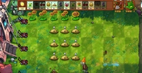 开局使用樱桃炸弹来炸掉土豆,随后在第一排种满向日葵。一个土豆雷的时间足够让您种下多个向日葵,助力阳光的快速积累。