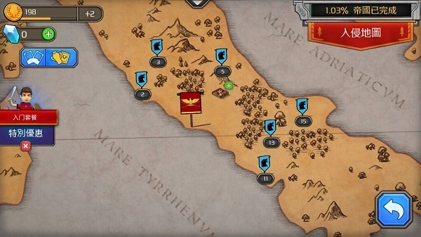 成长帝国罗马的汉化版本,是一款以古罗马战场为背景打造的策略塔防类游戏。它采用了卡通化的美术风格,能为玩家带来更为清新的游戏体验,同时搭配丰富有趣的关卡挑战玩法,让你感受到与众不同的游戏乐趣。这款游戏融合了塔防、策略挑战以及角色扮演等多种元素,你可以通过消灭敌军来获取资源,再对这些资源进行合理分配——既能用来提升城墙的防御能力,也能增强士兵的攻击属性,感兴趣的话就来体验一下吧!