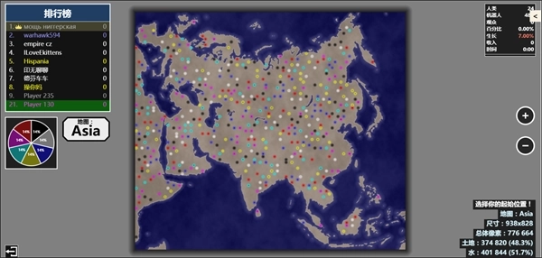 3、进入游戏后,映入眼帘的是亚洲地图,我们需要在此处建立属于自己的专属阵营。