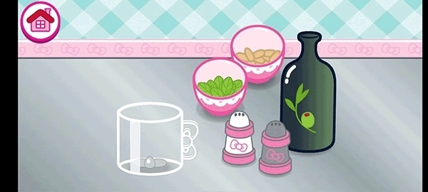 4、把用来制作酱料的这些食材全部倒进容器里,点击食材使其旋转就能完成倒入操作了。