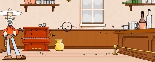 《西部怪老头游戏正版》是一款魔性十足、解压又好玩的射击类手机游戏!在游戏里,你需要瞄准并射击一个怪老头,不断扣动扳机——但这老头特别灵活,你未必能轻易射中他!他看似无敌,不管是直接射击还是借助道具,都很难将他打倒。不过为了让玩家解气,只要点击游戏里的exit(退出)按钮,就会有一个桶从天而降把老头砸倒,也算是帮玩家出了口恶气。