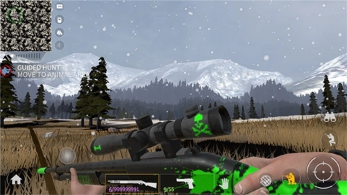1、猎人可通过屏幕中心区域操控准星,点击右下角发射子弹,点击左下角开启瞄准镜;开镜状态下,在镜头边缘区域滑动可进一步放大视角,同时右下角还设有红外线开启功能;屏幕左右两侧均配备移动按钮,猎人可借此左右移动以调整至合适视角,不过移动的范围相对有限。