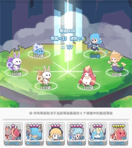 功能解析:游戏里只需重点培养6个使魔,剩下的使魔放入共鸣槽位就能共享等级和阶级的提升,操作起来确实很便捷!这里建议大家按照火、风、水三种属性平均分配培养数量,这样能为后续通天巨塔中解锁的元素塔玩法提前做好准备。