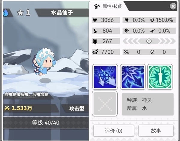 水晶仙子的优势十分突出:其一,她的三技能能为全体队友提供行动力加成与攻击增益buff,二技能则可恢复队内行动力最低队友30%的行动力,同时增加能量并减少一回合冷却时间,这两个技能均属于辅助定位中的强力神技;其二,该角色的初始速度在全游戏里名列前茅,作为拉条辅助再合适不过;其三,获取途径简单,仅需充值30就能获得5星角色,是这套阵容当之无愧的辅助核心。装备方面,核心属性建议优先选择速度,圣痕则推荐搭配流光。