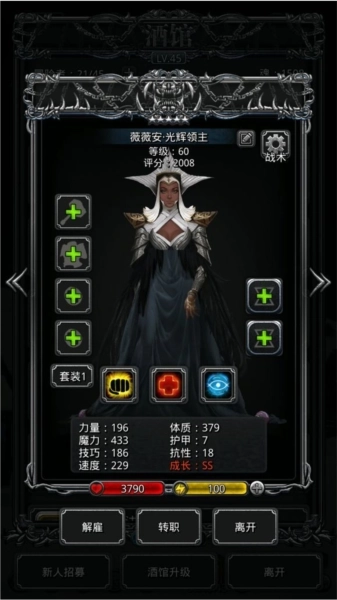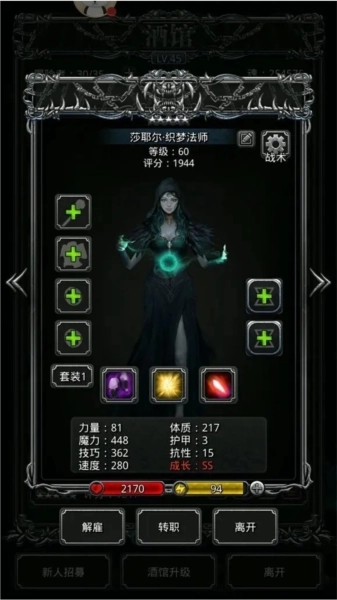 在《地下城堡2》里,法师的需求量真的特别大,到了中后期,你永远都会觉得法师不够用。先不说能不能拿到极品法师,光是凑齐足够数量的法师都很费劲——三冰法、三火法、四血法,连巫医也得算进去。第一个抽到的SS法师,不管品质好坏,先转成传奇法师用来推图;要是它的魔力属性特别出色,那就转火法。之后再慢慢凑齐冰法、火法和血法。这里要提醒一句:别因为血法的魔力比元素法师低就把它解雇了,血法的魔力本来就该略低于元素(运气特别好的玩家可以忽略这条)。巫医的话,有一个技巧属性不错的就够用了,至于其他分支,个人觉得没什么用,不是必须培养的职业。