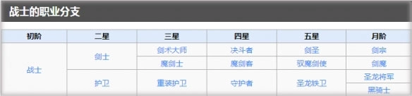 战士→护卫→重装护卫→守护者→圣龙铁卫→黑骑士