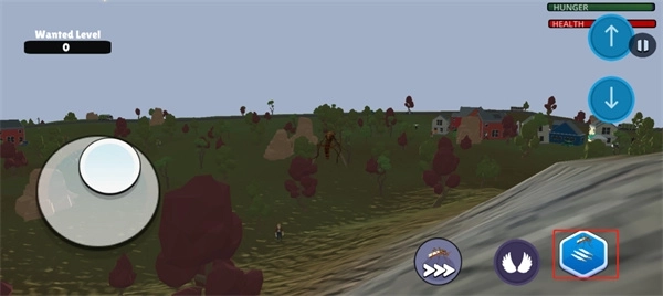 2、在游戏里,你可以借助左下角的摇杆操控角色移动,双击右下角的翅膀按钮就能开启飞行模式。飞行时,通过右上角的上下按钮可以调整飞行高度。不过要留意,飞行过程中会持续消耗体力,一旦体力耗尽就无法继续飞行了,这时候玩家需要回到地面稍作休息,体力便会自动恢复。