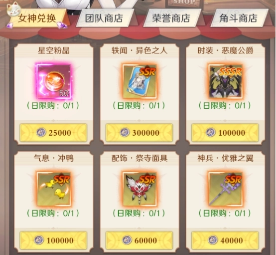 积分可以用于女神商店兑换稀有奖励