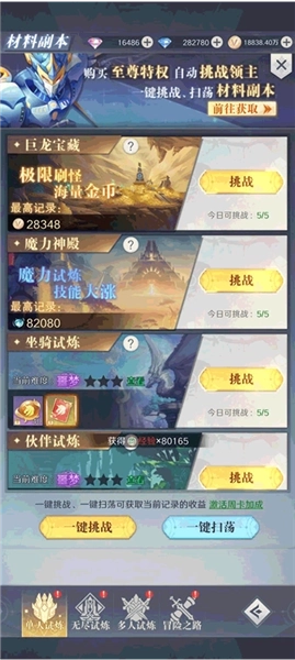 2、冒险榜开启后,对应的章节才能进行挑战,尚未开启的章节无法挑战。